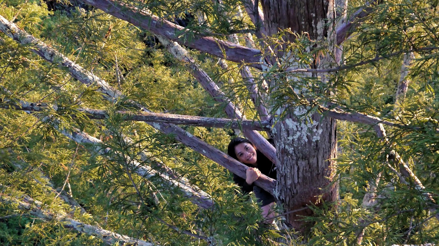 I had never climbed trees as a child–but it had to happen sometime!